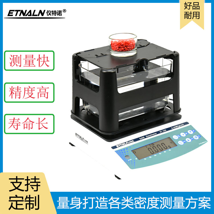 在塑料行業,密度是衡量產品質量的重要指標之一。儀特諾電子式密度計ET-320,憑借其高效、精準的測量性能,成為了塑料行業廣泛應用的密度測試利器。無論是塑料塊體、顆粒、粒子還是粉末,ET-320都能輕松應對,幫你實現快速又準確的密度測量。